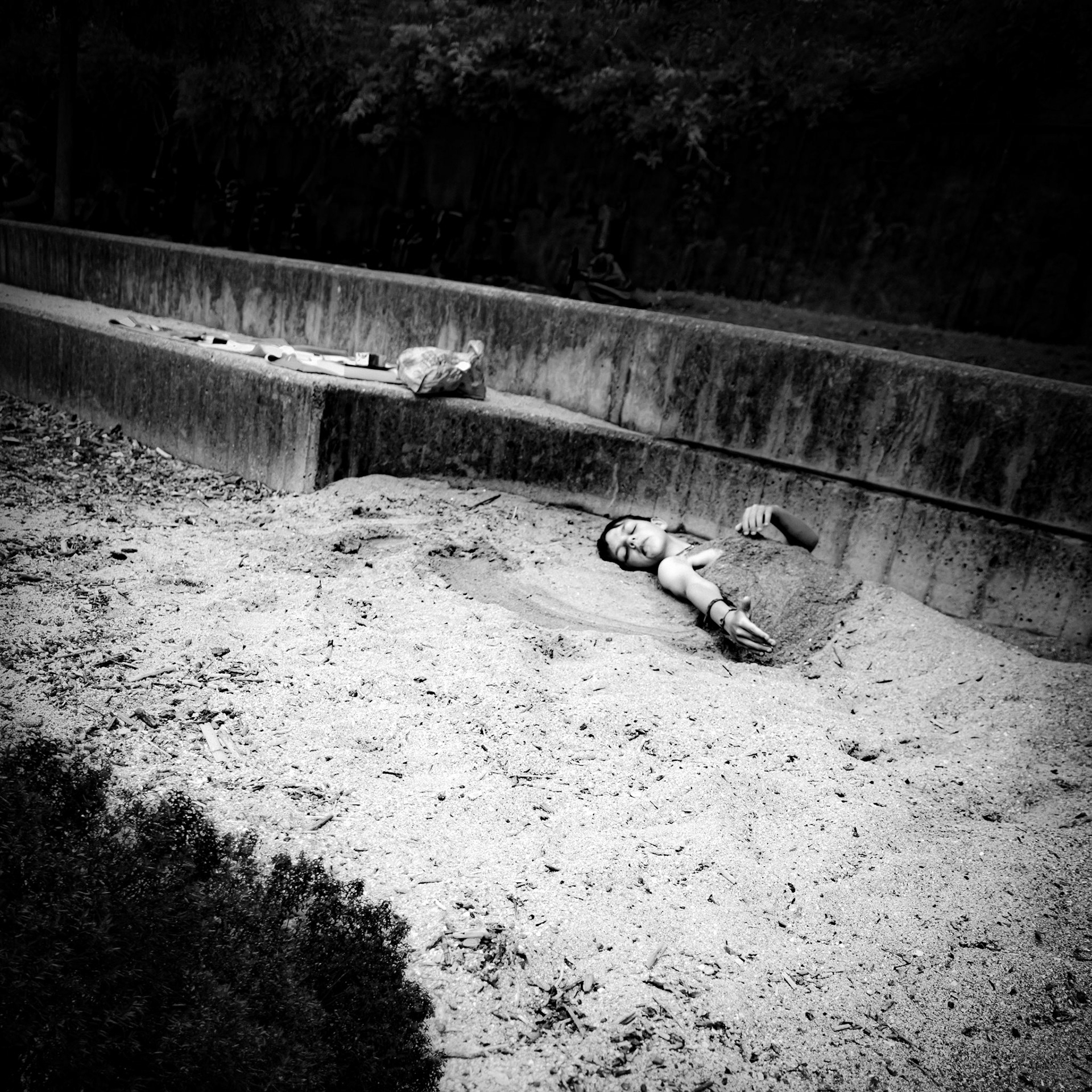 ”Kävelen italialaisella uimarannalla. Vaikutelma on kuin neorealistisesta elokuvasta. Vanhusten ja lasten maailma. (Vanhemmat kuka missäkin, rahastoimassa.) Yhteiskunnallisen aseman merkit on riisuttu, on niin kuuma. Ihmiset näyttävät vain ihmisiltä, muotoineen ja ryppyineen. Iloa, haurautta ja helpotusta kuumuuden keskellä. Tasa-arvoisia rannalla, luonnon edessä.”